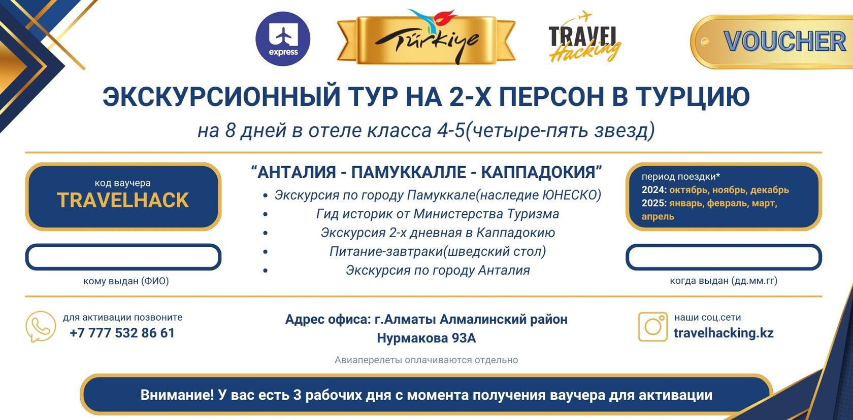 Және Турцияға екі адамдық путевканы тегін алу мүмкіндігіңіз бар. Тегін түрде осы вебинарда!